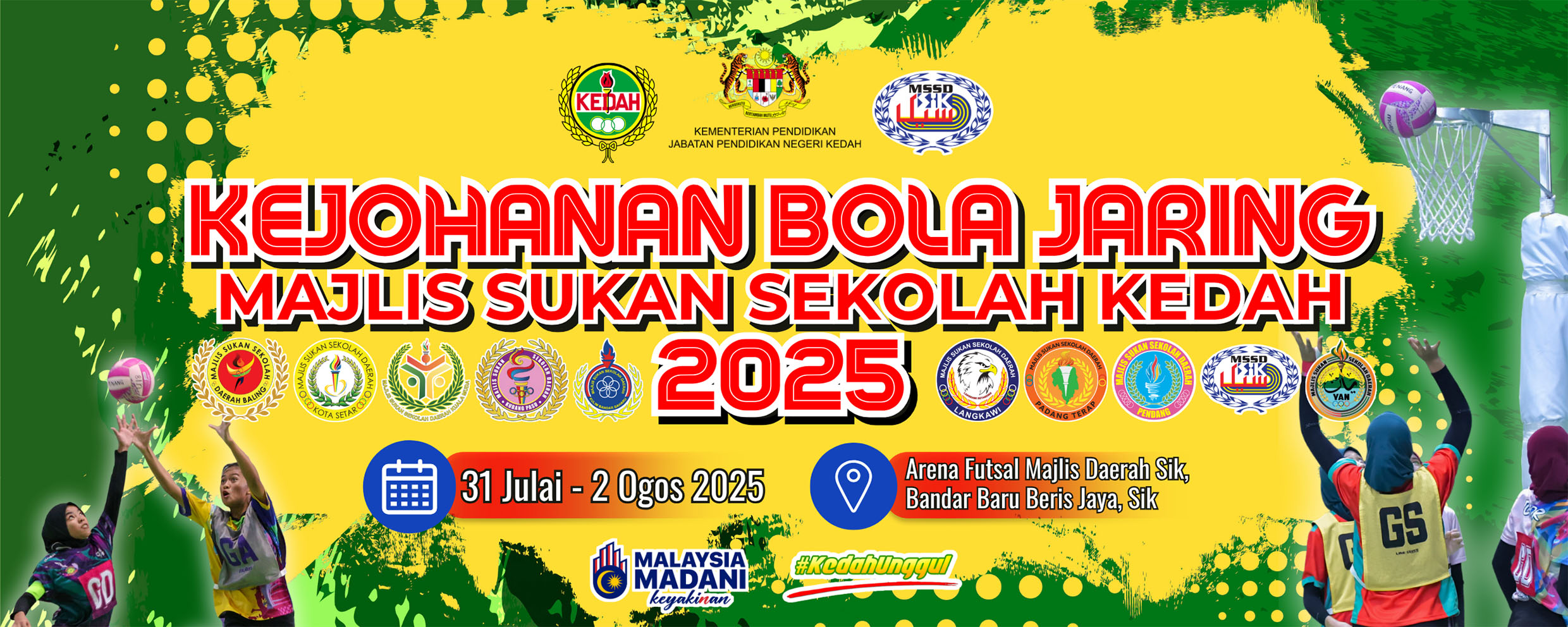 KEJOHANAN BOLA JARING MSSK 2025MAJLIS SUKAN SEKOLAH KEDAH (PENGELOLA MSSD SIK)31 JULAI - 2 OGOS 2025 @ ARENA FUTSAL MAJLIS DAERAH SIK